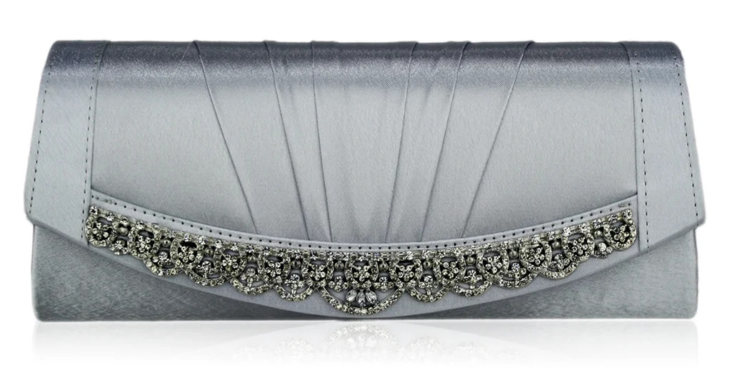 Saténové stříbrné psaníčko vhodné pro nošení na plesy, svatby a různé večerní párty.