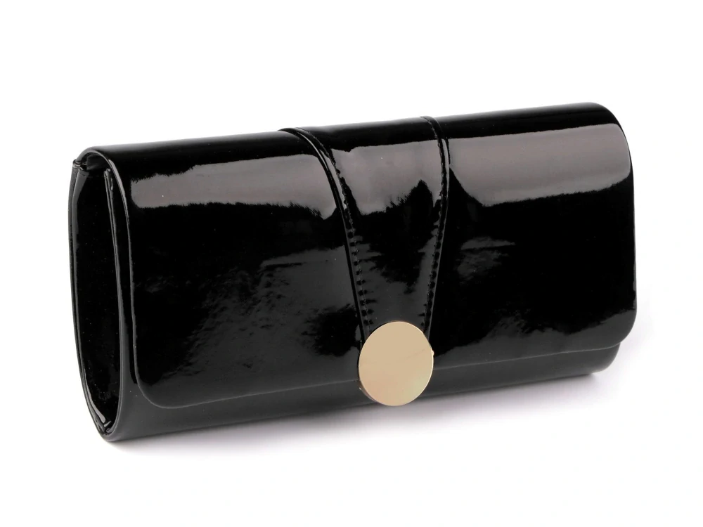 Černá lakovaná společenská kabelka psaníčko vhodné pro nošení na různé večerní party.